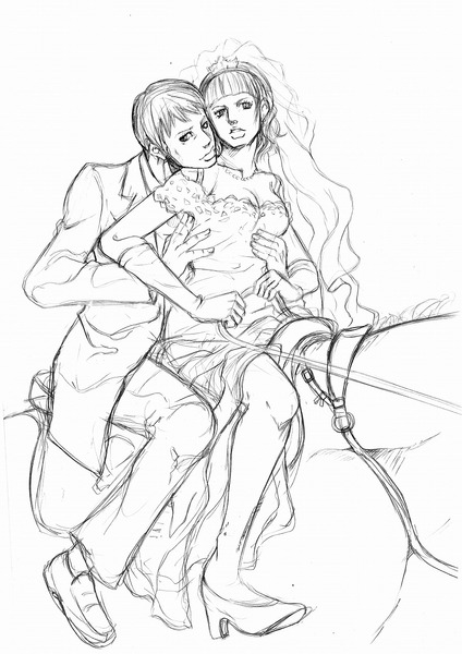 I want to compose two riding a white horse at JoJo style pictures. Reference pictures.