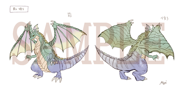 以前デザインをしたドラゴンの通常設定画とデフォルメデザインをお願いします。