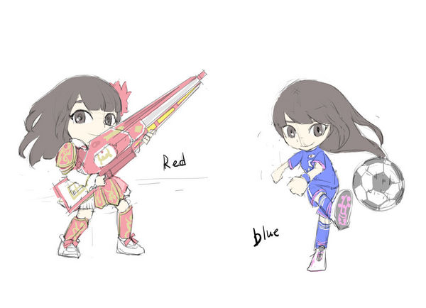 武装の赤、サッカーの青でラフを作成。